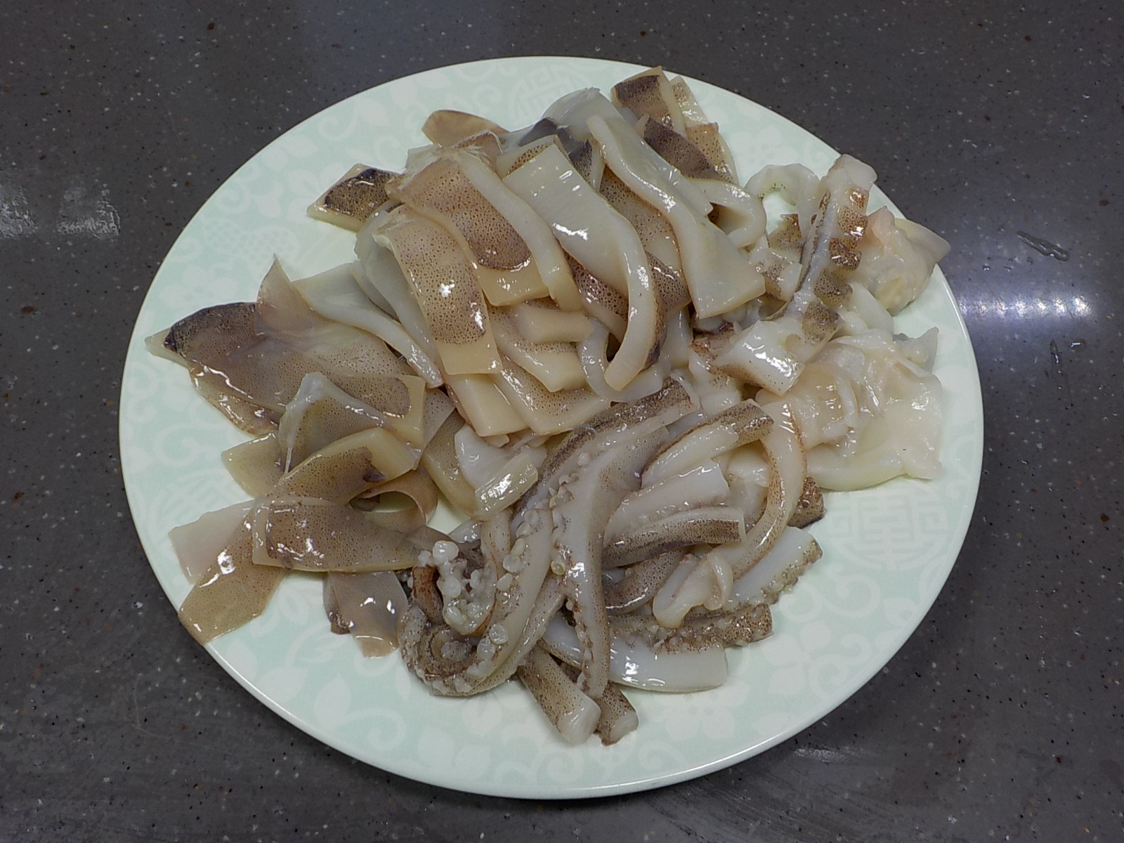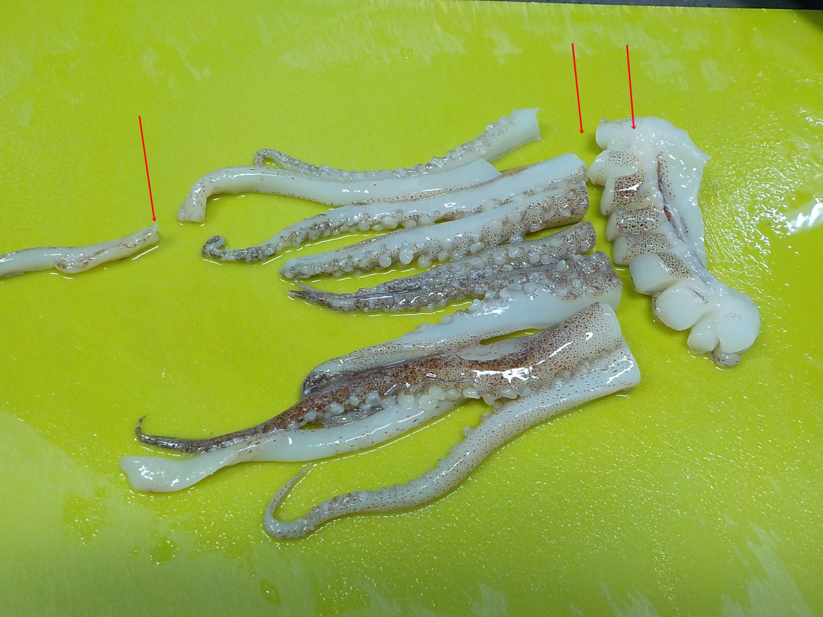오징어는 내장을 빼고 깨끗하게 씻은 후, 몸통은 길이로 반을 갈르고 난 후 본인의 손가락 굵기 정도로 썰어 줍니다. 오징어 다리는 다리 연결 부위를 자르고, 가장 긴 다리만 한 번 잘라주면 되니 아래에 나와있는 사진을 참고하시기 바랍니다.